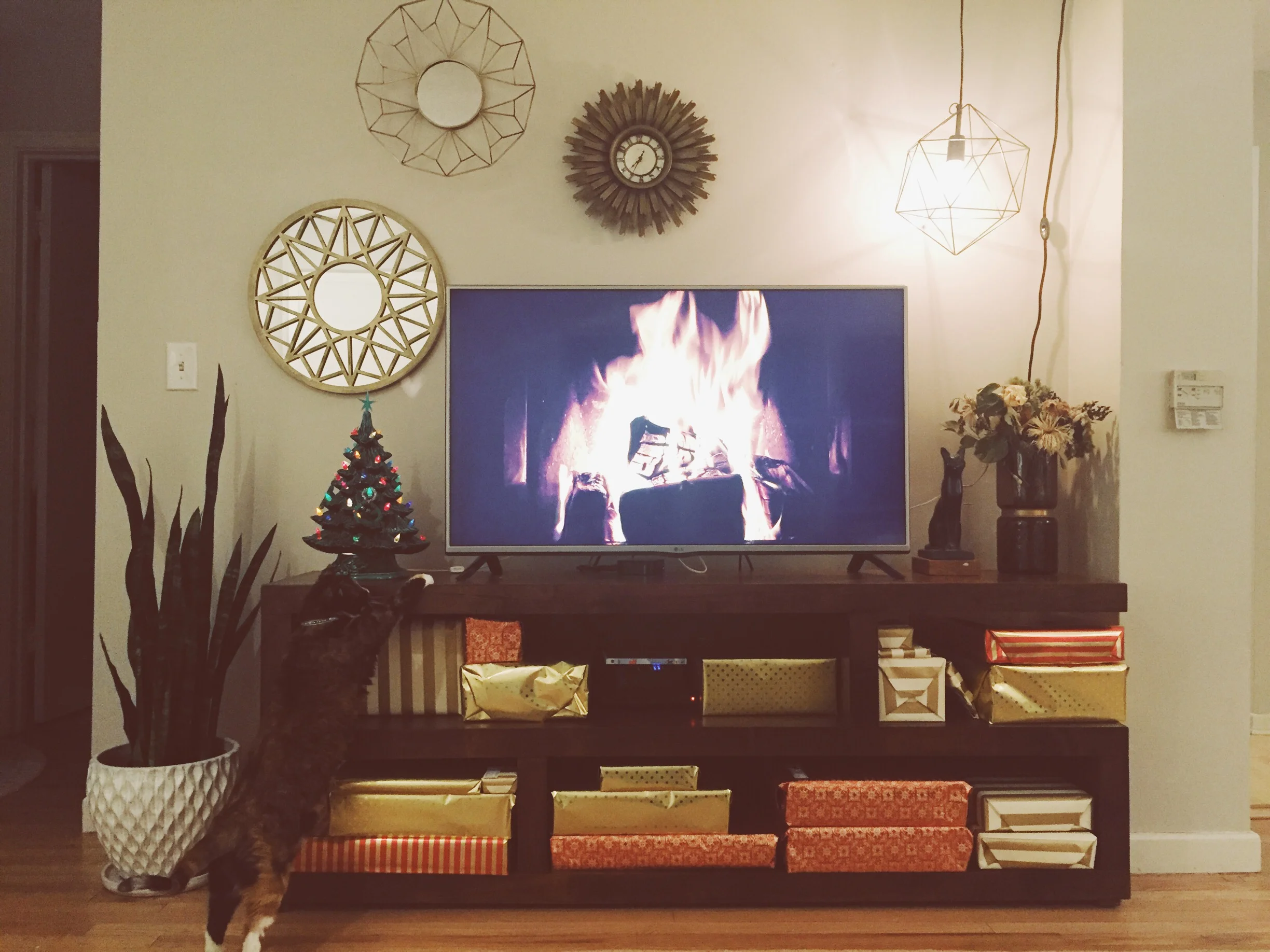 ALT Design Studio December 22, 2015 Presents roasting under an open fire ALT Design Studio December 22, 2015 No tree, no problem! Here's my simple fix to save space and decorate our living room for Christmas.