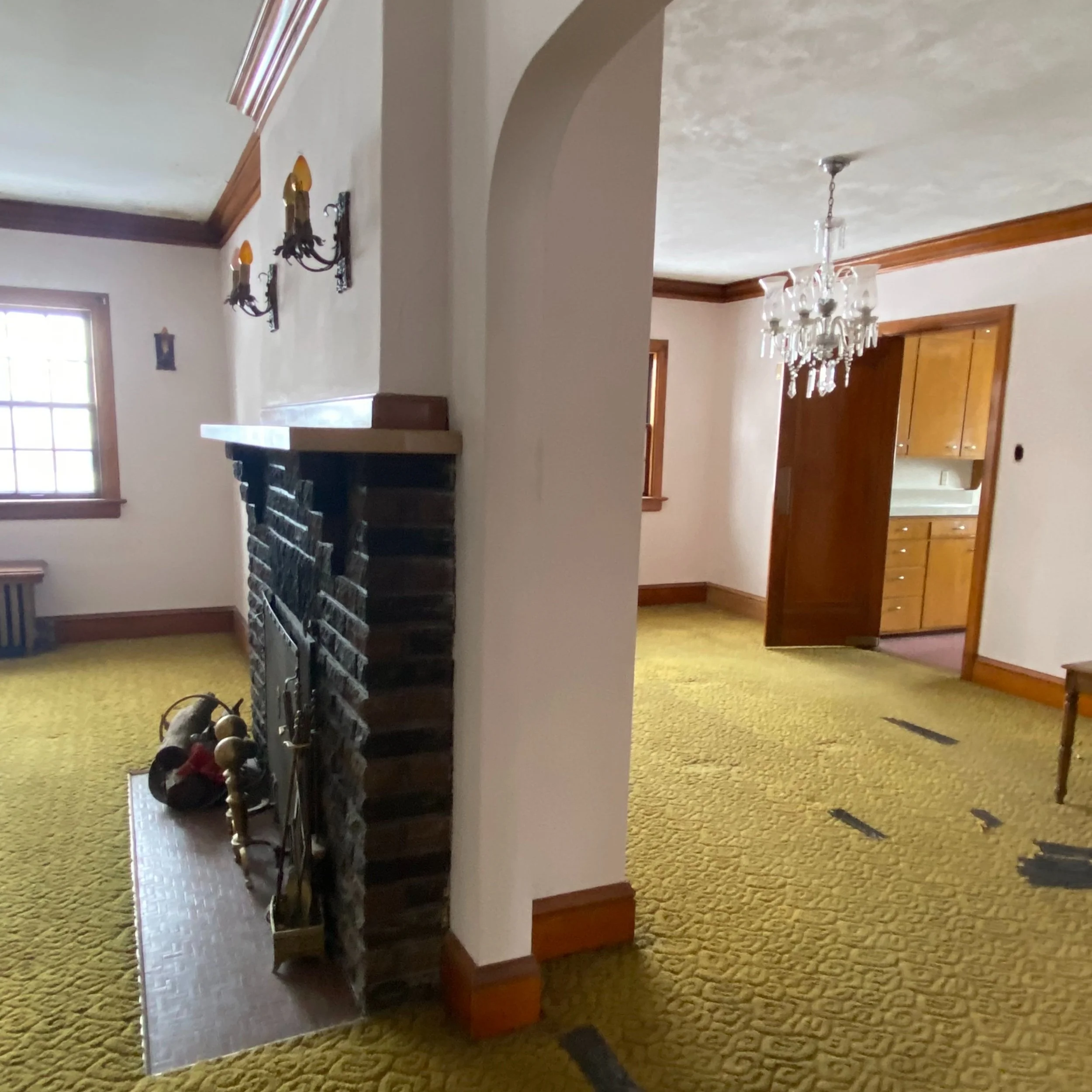 We instantly fell head over heels with 1508 Hull Ave when we first walked through with our realtor friend, Eric Quiner, last winter. This unique home was built in 1926 and is directly across from Grandview University. We knew right away that the house had great bones and ever charming original architecture under it’s current dirty and dated finishes.